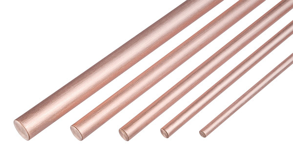 Gezogene Rundstange (E-Cu) mit hohem Härtegrad. Sauerstoffhaltig und gut leitfähig, Länge 1 m.