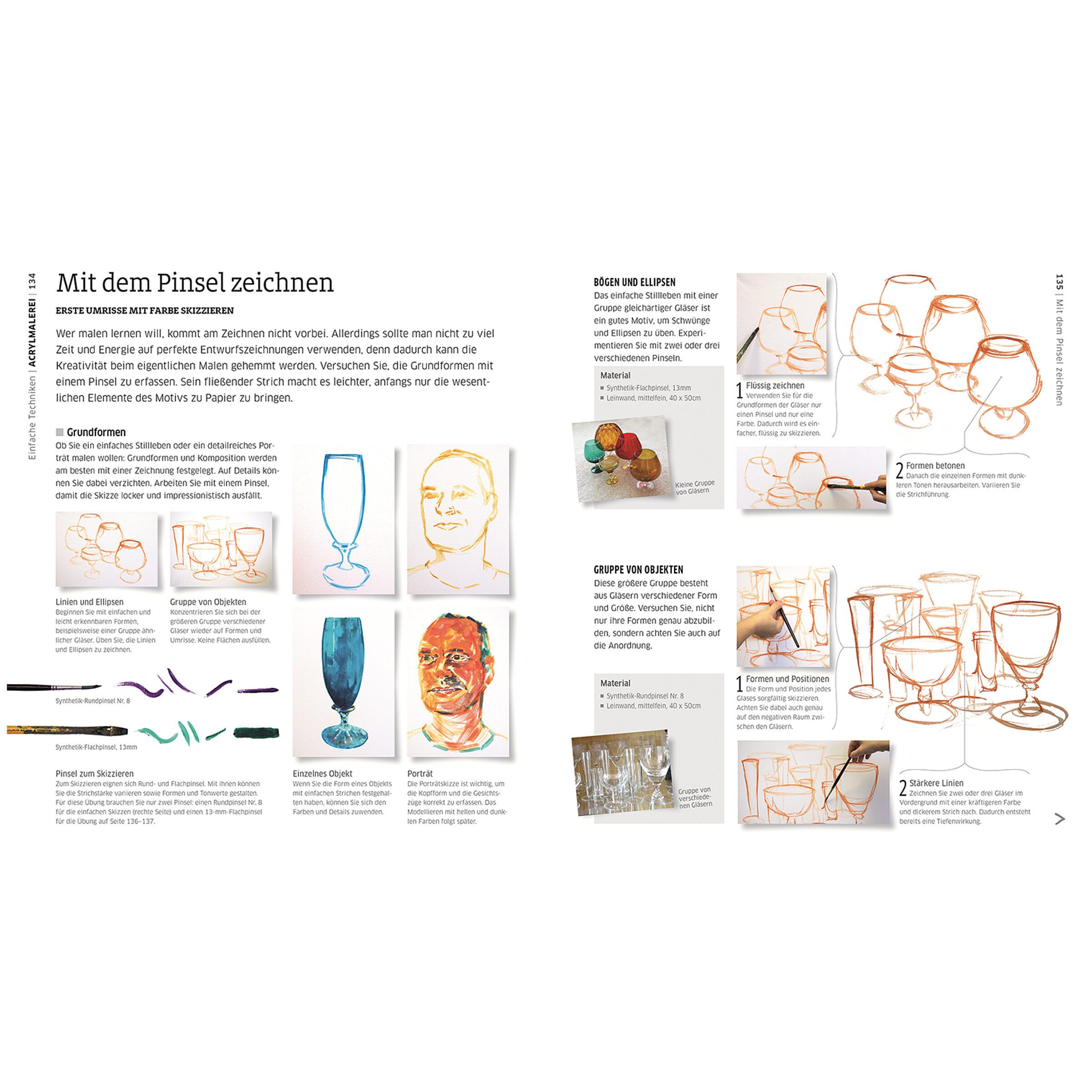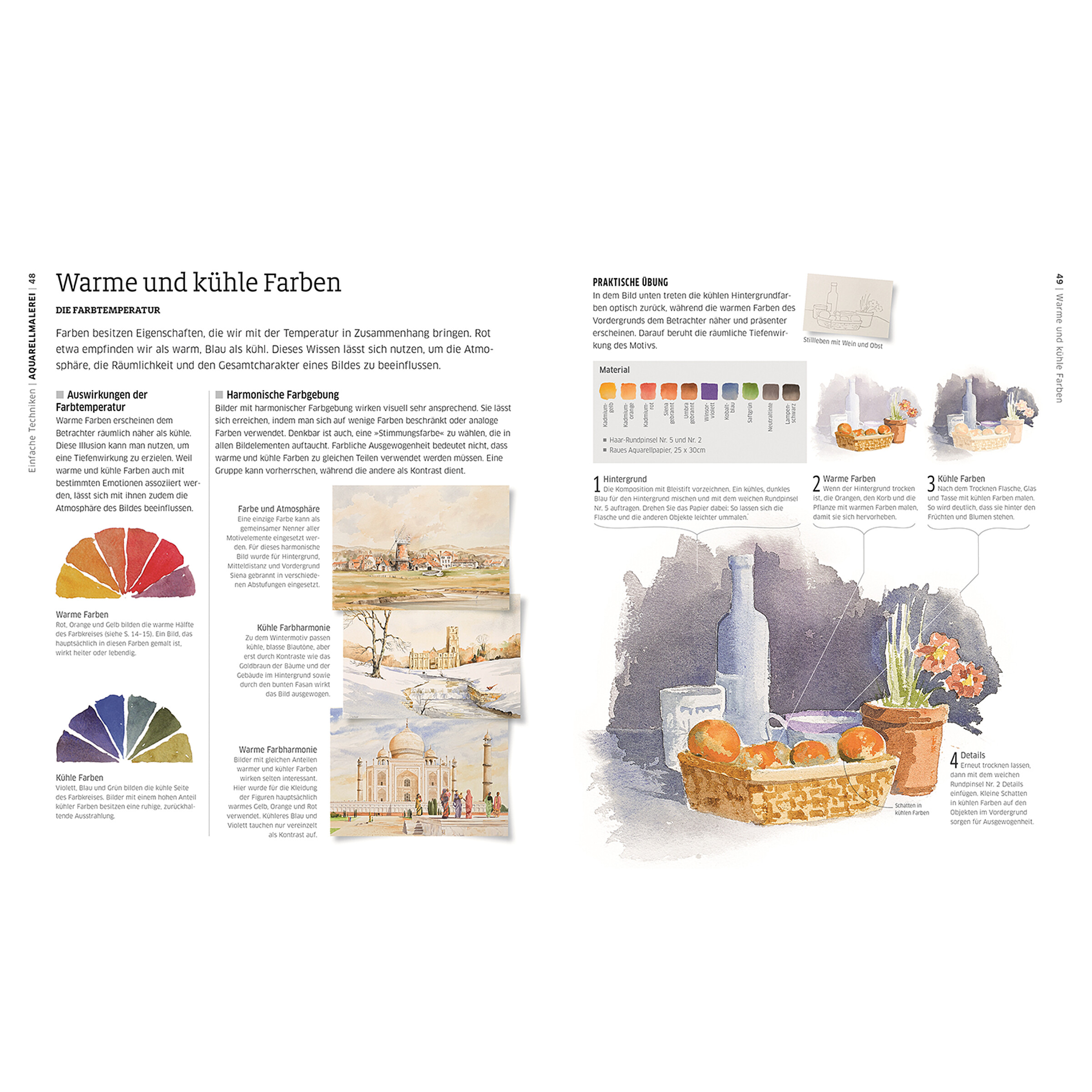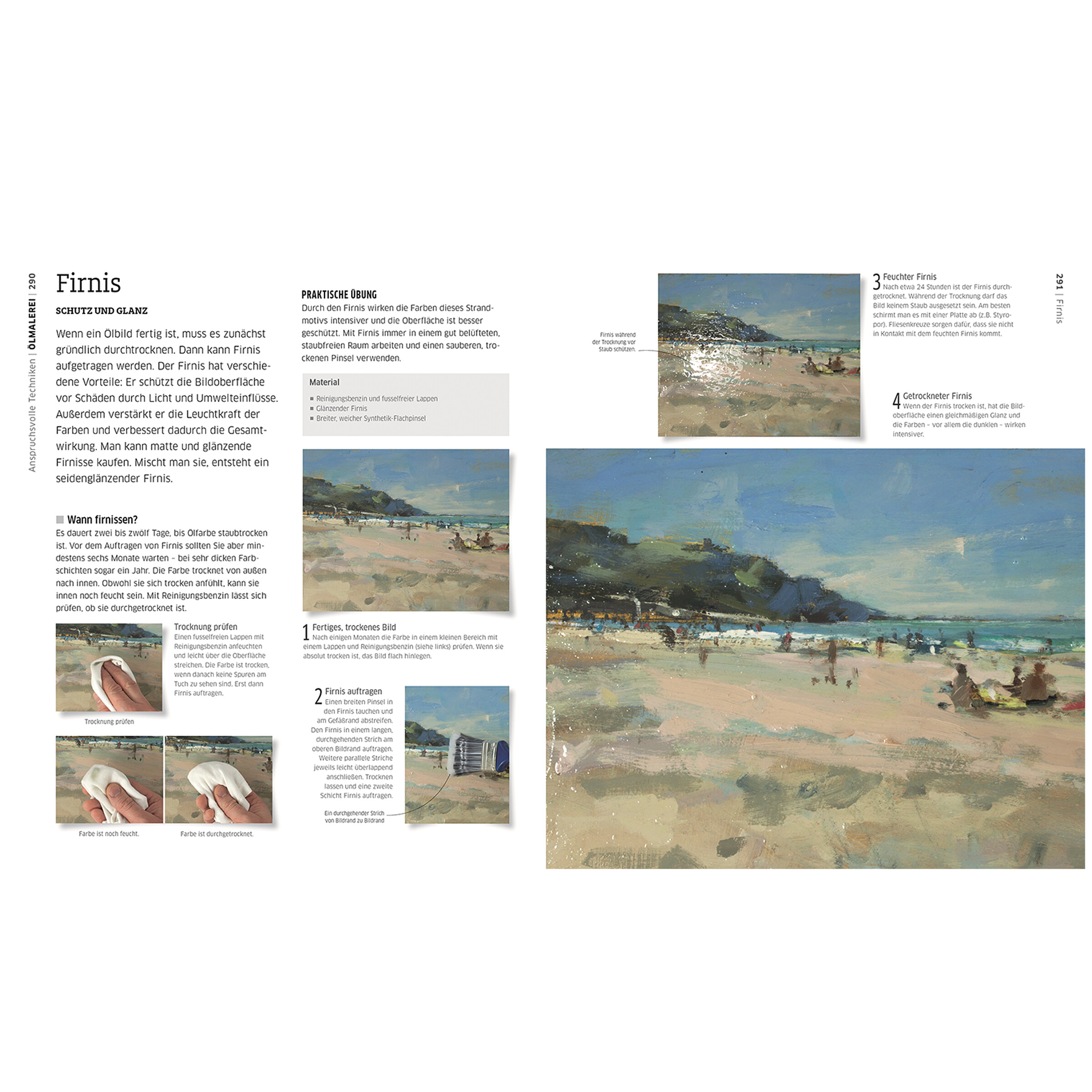 Anschauliche Schritt-für-Schritt-Anleitungen von Profikünstler*innen führen durch mehr als 80 einfache bis anspruchsvolle Techniken: von den Grundlagen der Komposition bis hin zu atmosphärischen Perspektiven, optischen Mischeffekten oder der anspruchsvollen Lasurtechnik. Zudem finden sich im Buch inspirierende Übungen, die dabei helfen, wichtige Fertigkeiten zu entwickeln und den eigenen Stil zu entdecken.