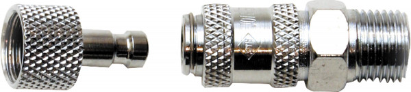 Ein sehr nützliches Teil, besonders wenn mehrere Spritzpistolen verwendet werden. Wird an den Schlauch angeschraubt und über Stecktülle mit der Pistole verbunden. Ermöglicht blitzschnellen Austausch der Geräte. 1/8“-Standardgewinde für Schlauchanschluss, Gewicht 13 g.