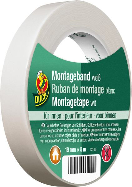Doppelseitiges Montageband zur dauerhaften Befestigung von flachen Gegenständen im Innenbereich. Hitzebeständig bis 110 °C, nur begrenzt UV-resistent.