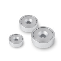 Vernickelt, glänzend, extrem hohe Haftkraft (10 bis 15 Mal stärker als bei normalen Ferritmagneten gleicher Größe).