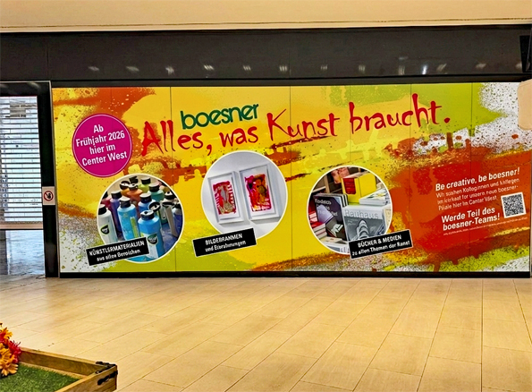 Im Frühjahr 2026 eröffnet boesner eine neue Niederlassung in Innsbruck – und erweitert damit das bestehende Netz in Österreich um einen attraktiven Standort im Westen des Landes. Im Einkaufszentrum west entsteht auf über 1.200 m² ein großzügiges Fachgeschäft, das wie gewohnt ein breites Sortiment an professionellen Künstlermaterialien, Einrahmungen und Kunst-Fachliteratur bietet. Der Standort im Einkaufszentrum west überzeugt durch kurze Wege, eine direkte Anbindung an den öffentlichen Verkehr und zahlreiche Parkmöglichkeiten. In unmittelbarer Nachbarschaft befinden sich außerdem verschiedene Schulen, universitäre Einrichtungen und ein lebendiges Umfeld für Kunst und Design – ideale Voraussetzungen für eine boesner-Niederlassung mit Ausstrahlung weit über Innsbruck hinaus.