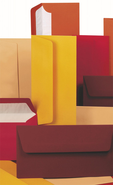 Hochwertige Umschläge mit fein gerippter Struktur aus hochwertigem Papier (120 g/m² bzw. 125 g/m² beim Farbton Kraft), säure- und ligninfrei sowie FSC-zertifiziert. Mit Seidenfutter (außer beim Farbton Kraft) und Nassklebung. Erhältlich...