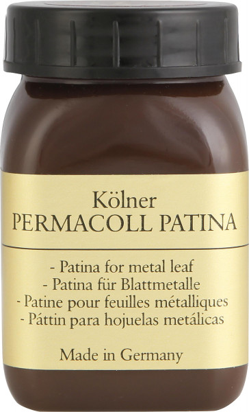 Braune Patina auf Acrylbasis. Geeignet zur künstlichen Alterung von vergoldeten Oberflächen im Innenbereich. Erzeugt kontrastreiche und lebendige Vergoldungen. Speziell abgestimmt auf Klebemittel für Blattgold und Schlagmetall.