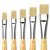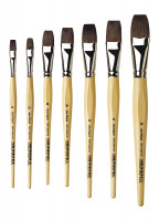 Flacher Lavier- und Grundierpinsel aus echtem und imitiertem Fehhaar für die Aquarellmalerei. Mittellang gefasst, transparent lackierter Esagonalstiel. Made in Germany.