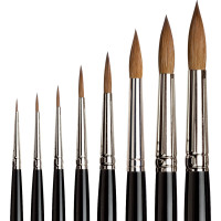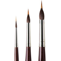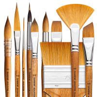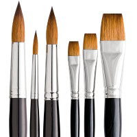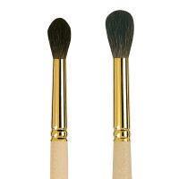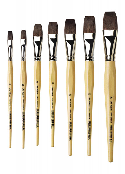 Flacher Lavier- und Grundierpinsel aus echtem Fehhaar für die Aquarellmalerei. Mittellang gefasst, transparent lackierter Esagonalstiel. Made in Germany.