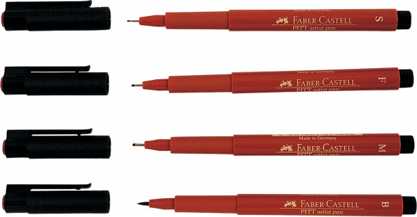 Zeichentuschestift für Skizzen, Studien und Tuschezeichnungen. Hoch lichtbeständige Zeichentusche, nach dem Trocknen hoch permanent. Fineliner in verschiedenen Farben und 4 Strichbreiten: Extra Superfine (XS = 0,1 mm), Superfine (S = 0,3 mm), Fine (F = 0,5 mm) und Medium (M = 0,7 mm)). Extra Superfine in schwarz ist perfekt für kleinste Details geeignet. Made in Germany.