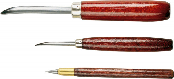 Dieses hochglanzpolierte Werkzeug dient zum Abschleifen von Graten, zum Polieren der Druckplatte und der Korrektur.
