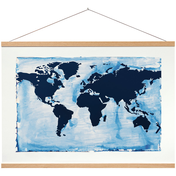 Mit den Schienen lassen sich Poster, Bilder, Drucke und Zeichnungen schnell und unkompliziert aufhängen. In den Schienen fixiert werden die Werke mithilfe von in das Holz eingelassenen Neodym-Magneten, die auch bei Papieren, Folien oder Karton mit höheren Grammaturen für zuverlässigen Halt sorgen. Als Aufhänger dient eine runde, gewachste Flechtschnur. Die Schienen sind in verschiedenen Längen verfügbar.