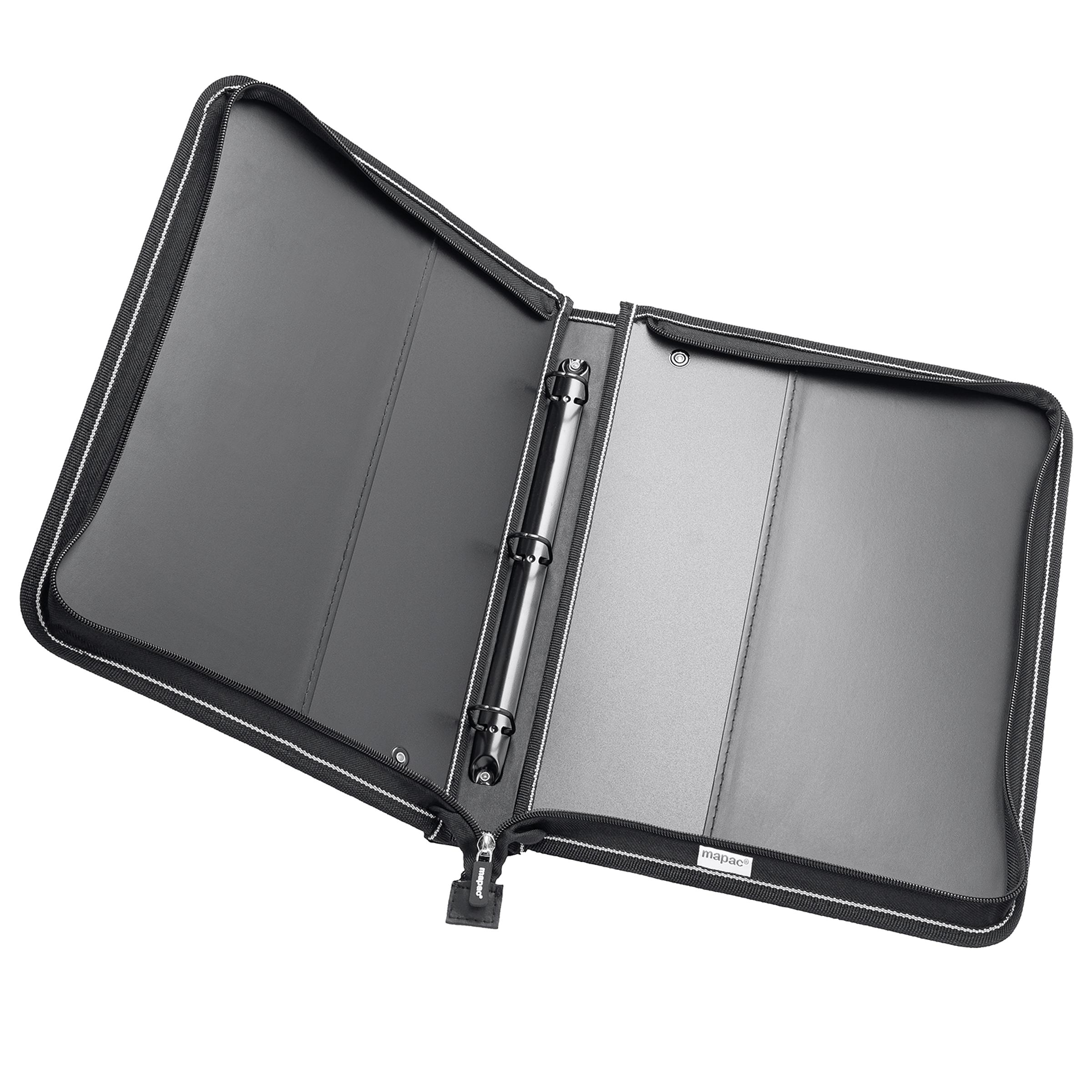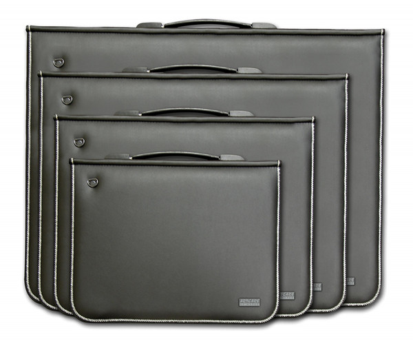 Mappe aus hochwertigem, weich gepolstertem und wasserabweisenden Kunstleder. Die integrierte Stahlplatte bietet größtmöglichen Schutz vor Beschädigung empfindlicher Arbeiten. Die Ringmechanik innen garantiert, dass Ihre Arbeiten in...