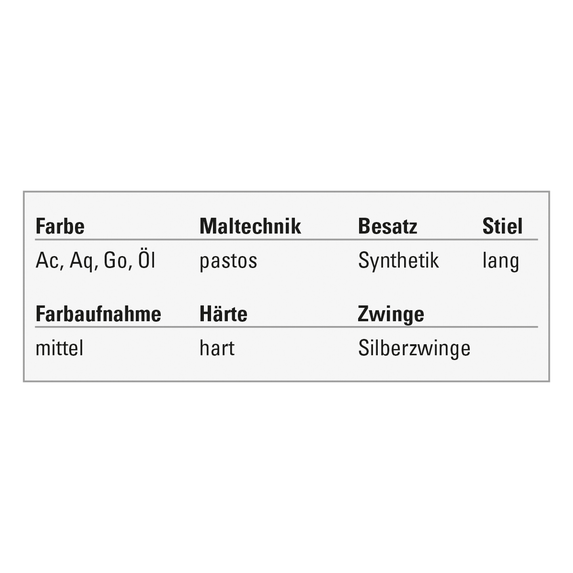 Speziell entwickelt für Miniaturen, feinste Detailarbeiten und Modellbau. Feinste Synthetikfasern sorgen für perfekte Spitzenbildung, Elastizität und Formbeständigkeit. Der ergonomisch dreieckig geformte, kurze Stiel ermöglicht eine sehr...