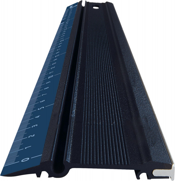 Präzisions- und Einrahmungs-Schneidlineal aus eloxiertem Aluminium mit Schneidekante aus rostfreiem Stahl und Anti-Rutschbelag.