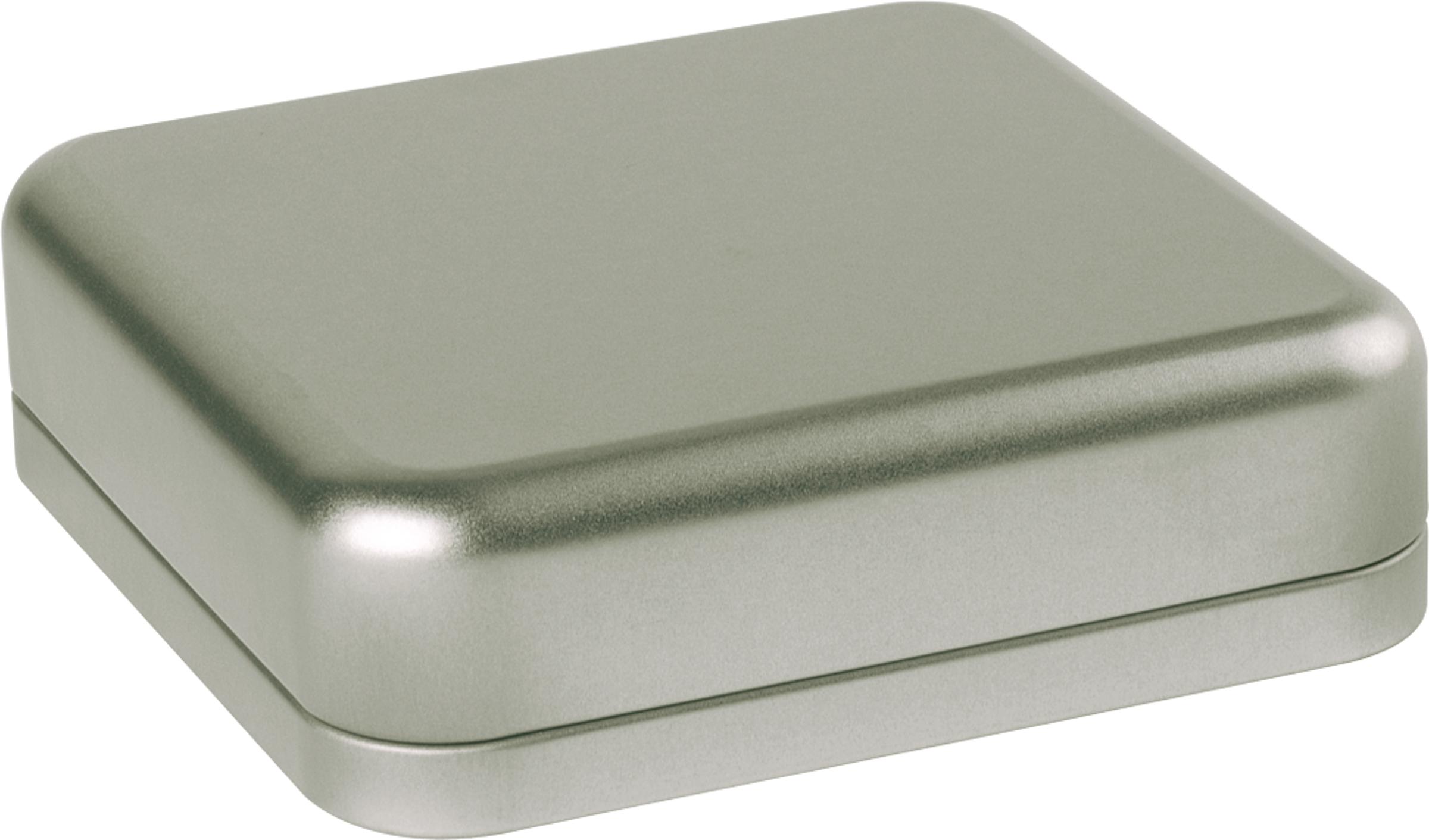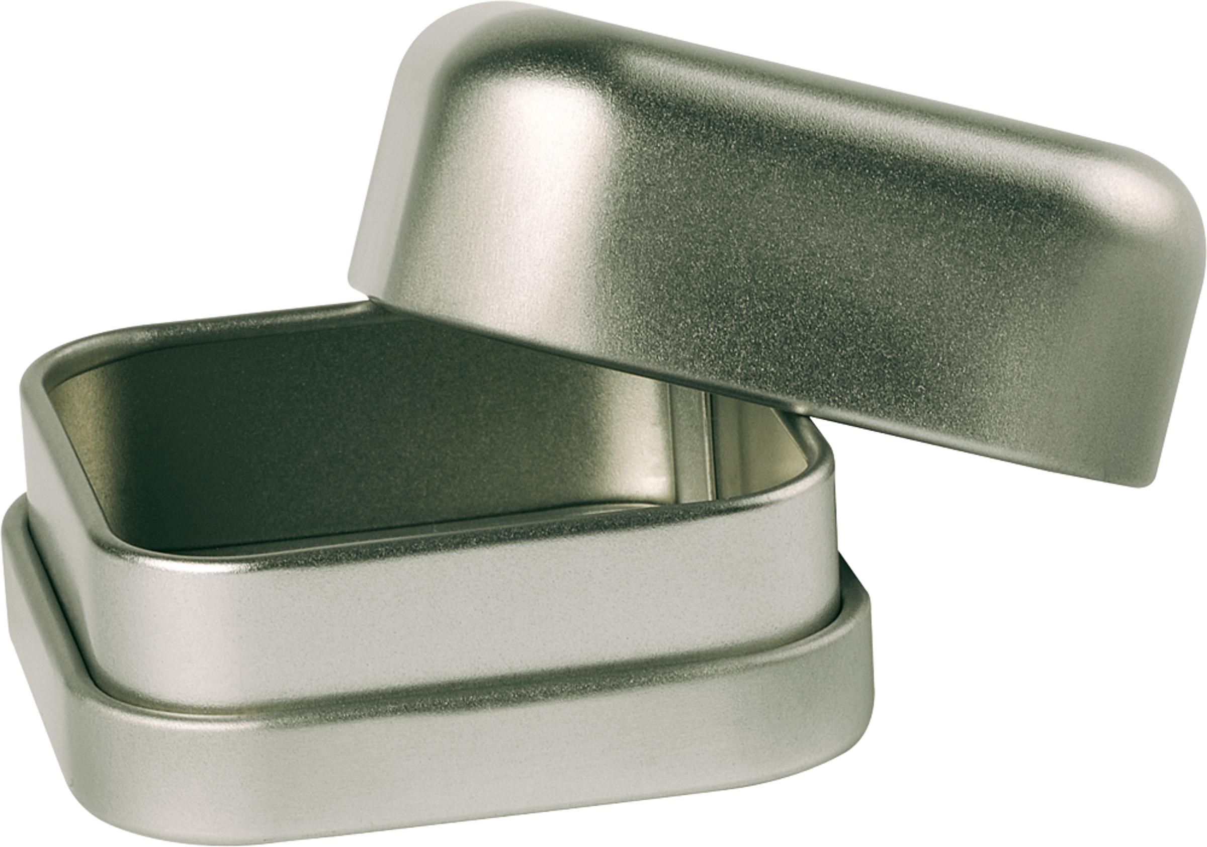Stahlblech, seidenmatt verzinnt und transparent lackiert. Besonders hochwertige, formschöne Ausführung mit Stülpdeckel.