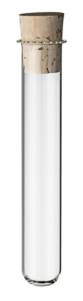 Klares Reagenzglas aus Borosilikatglas mit Rundboden und Bördelrand. Das lebensmittelechte, säurebeständige Glas ist dickwandig und daher mechanisch besonders widerstandsfähig, bietet aber dennoch eine gute Temperaturwechselbeständigkeit. Es lässt sich vielseitig einsetzen, beispielsweise zur Aufbewahrung von Pigmenten oder zum Befüllen mit unterschiedlichen Materialien. Passende Korken sind separat erhältlich.