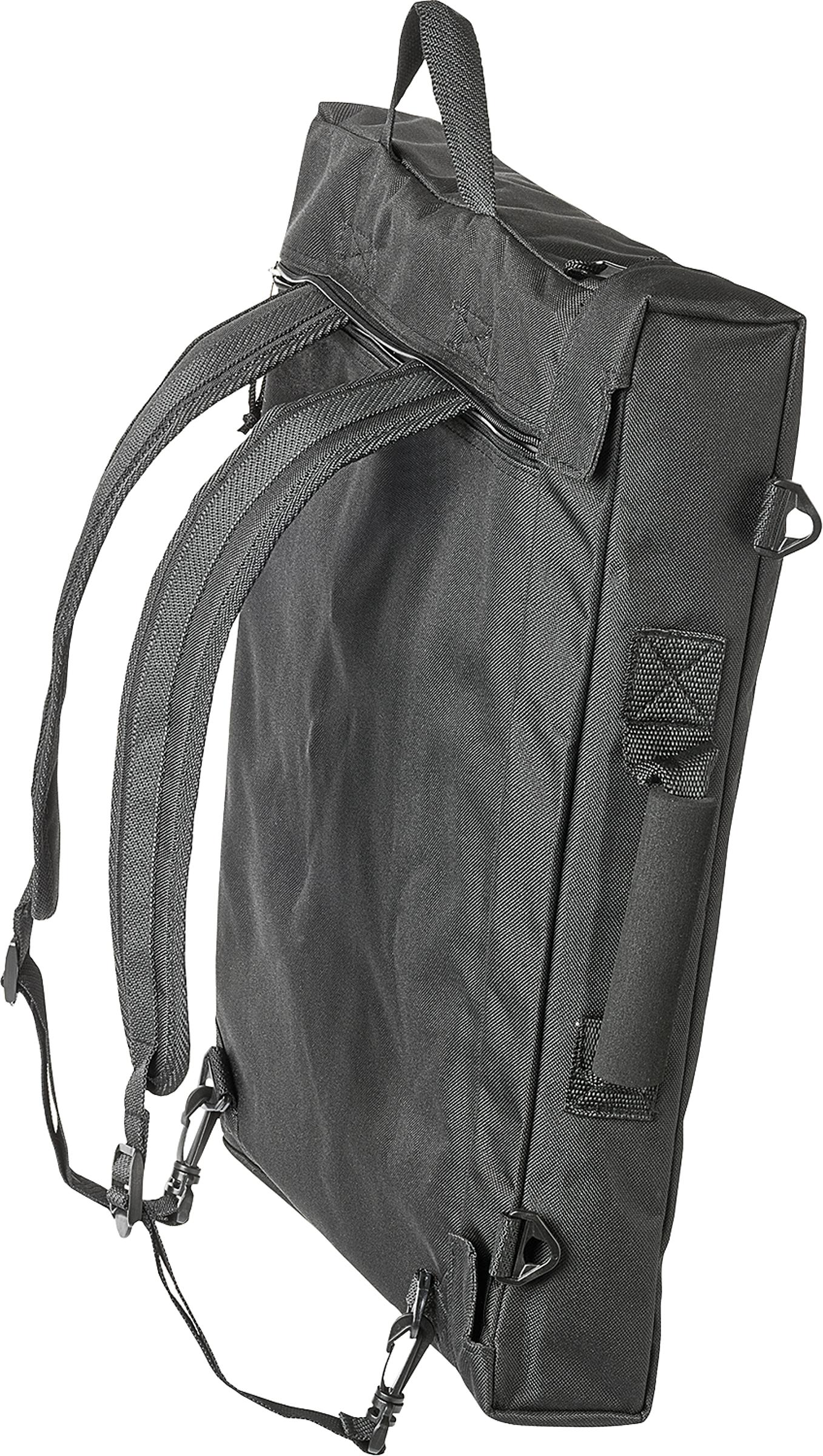 Diese multifunktionale Rucksack-Tragetaschen-Kombination aus reißfestem, schwarzen Nylon ist mit einem großen Hauptfach mit Reißverschluss ausgestattet, einer Halterung für eine Zeichenrolle, einer Außennetztasche, einem verstellbaren...