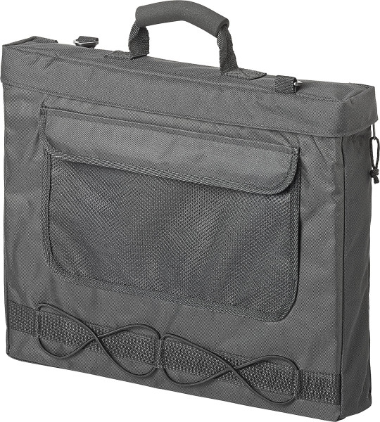 Diese multifunktionale Rucksack-Tragetaschen-Kombination aus reißfestem, schwarzen Nylon ist mit einem großen Hauptfach mit Reißverschluss ausgestattet, einer Halterung für eine Zeichenrolle, einer Außennetztasche, einem verstellbaren Schultergurt, mit Rucksackgurten und einem Tragegriff. Der Taschenrücken ist gepolstert. Die große Tasche auf der Rückseite bietet zusätzlichen Stauraum. Die Rucksackgurte können zudem bei Nichtgebrauch bequem in der Tasche verstaut werden. Die praktische Tasche ist für jeden Einsatzbereich geeignet. Größe: 46 x 40 x 7 cm (B x H x T). Ohne Inhalt.