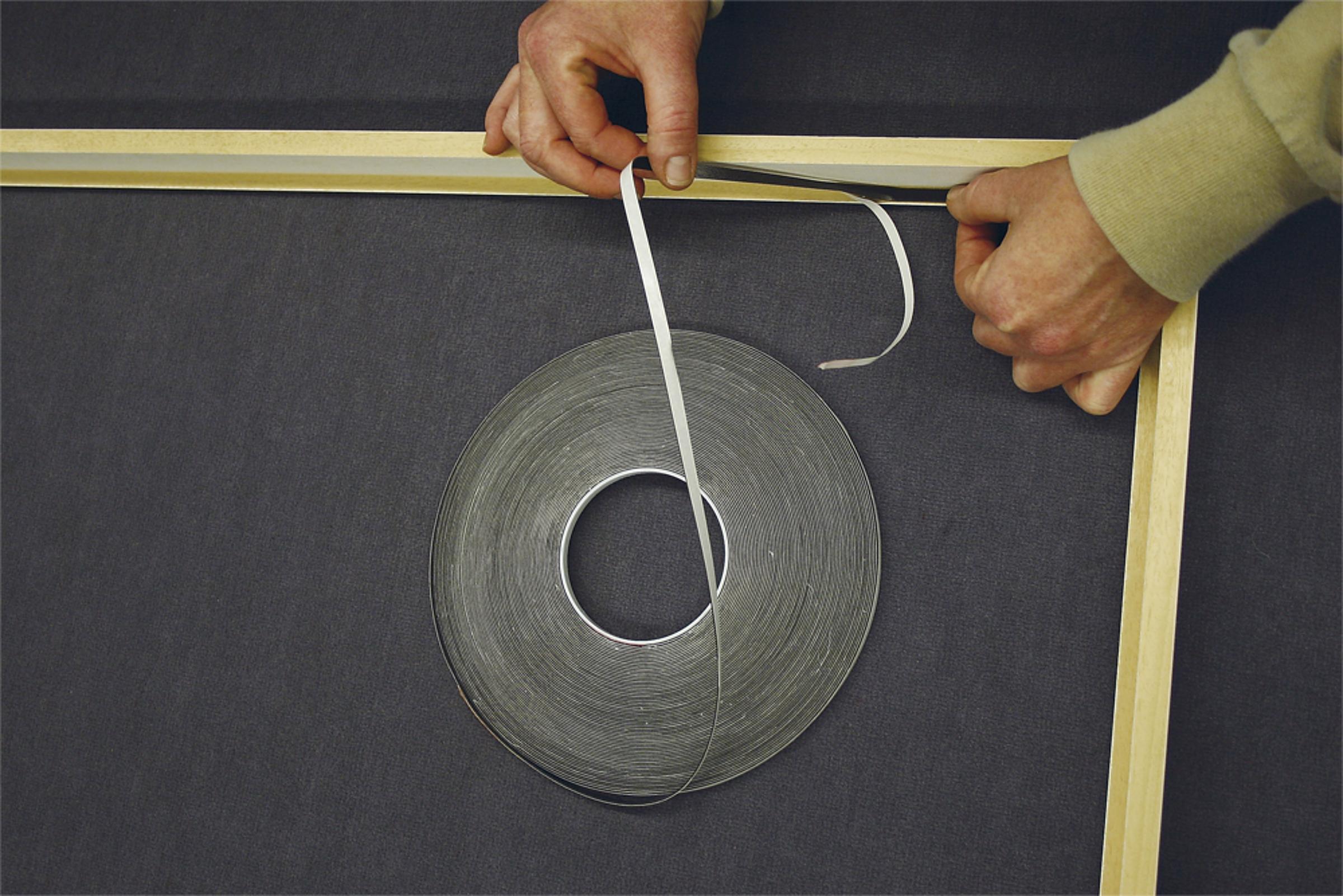 Dieses Klebeband aus inaktivem Polyethylen-Schaum wird in den Rahmenfalz geklebt und schützt Kunstwerke vor direktem Kontakt mit dem säurehaltigen Holz des Rahmens, dadurch wird eine nachhaltige Beschädigung oder das Festkleben am Rahmen verhindert. Bei Einrahmung von Spiegeln verhindert das Schaumstoffband Kantenrefelexionen und dient als Puffer zwischen Spiegelglas und Holz.