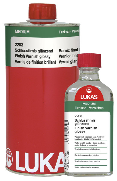 Glänzender, elastischer Kunstharz-Firnis. Gilbt nicht, haftet gut. Für Öl-, Acryl- und Temperabilder. Ist mit Terpentinöl entfernbar. Als Verdünnungsmittel kann Terpentinöl oder Citrusterpentin verwendet werden. Eingestellt für...