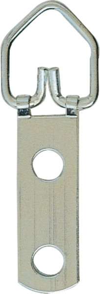 Schraubenaufhänger mit 2 Schraublöchern Gesamtlänge, ausgeklappt: 4,7 cm Länge/Breite der Schraubplatte: 3 cm/0,9 cm Breite Bügel: 1,5 cm, 1 mm stark Inkl. 2 Rundkopf-Holzschrauben: 3,5 x 16 mm