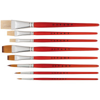 Erhältlich als Flach- und Rundpinsel, in Katzenzungenfasson sowie als Universal-Breitpinsel.