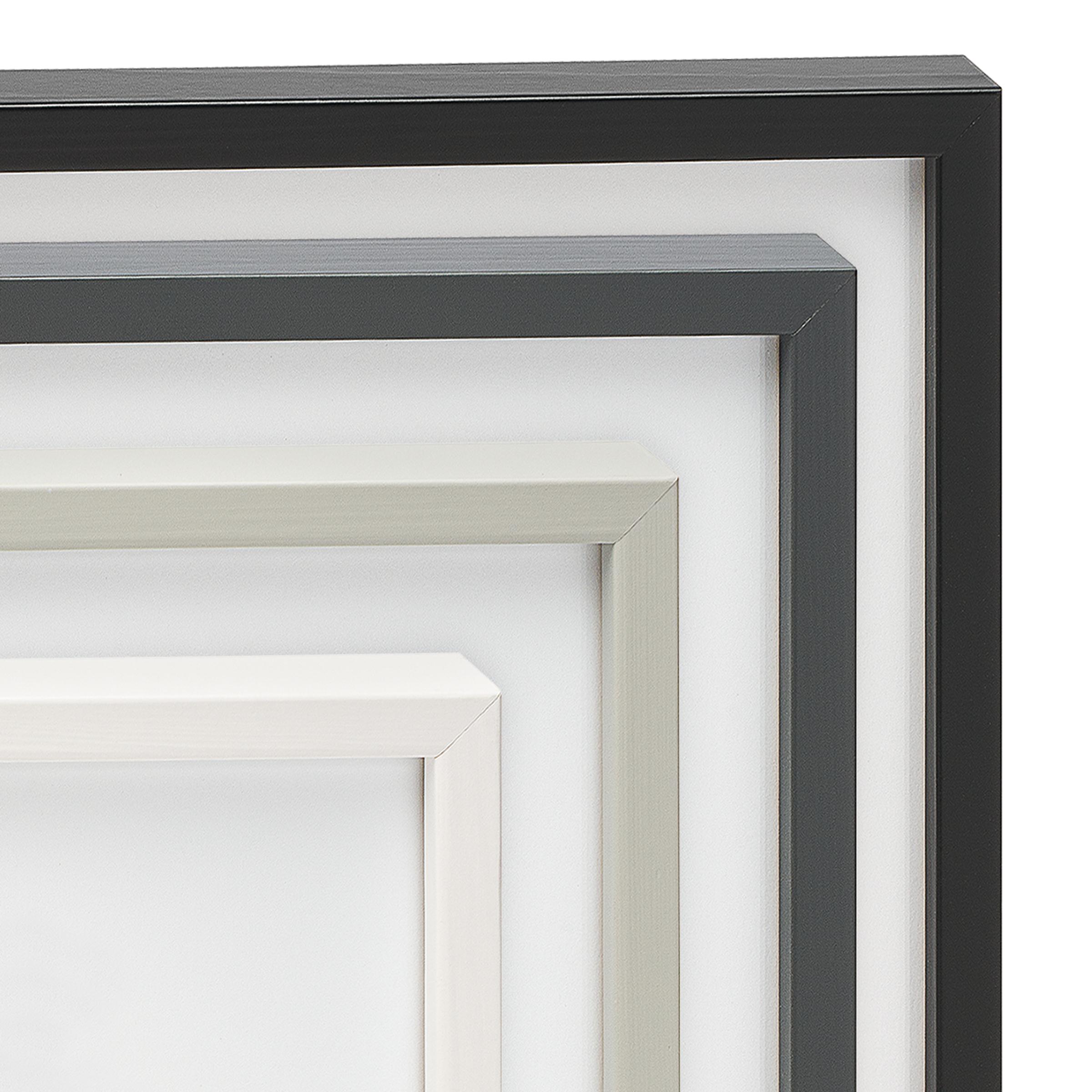 Der filigrane Rahmen aus Pinienholz gewinnt seine zurückhaltende Optik durch ein Profil mit besonders schmaler Draufsicht in Verbindung mit einer prägnanten Sichtkantentiefe (7 mm). Trotz deckender Lackierung ist die natürliche...