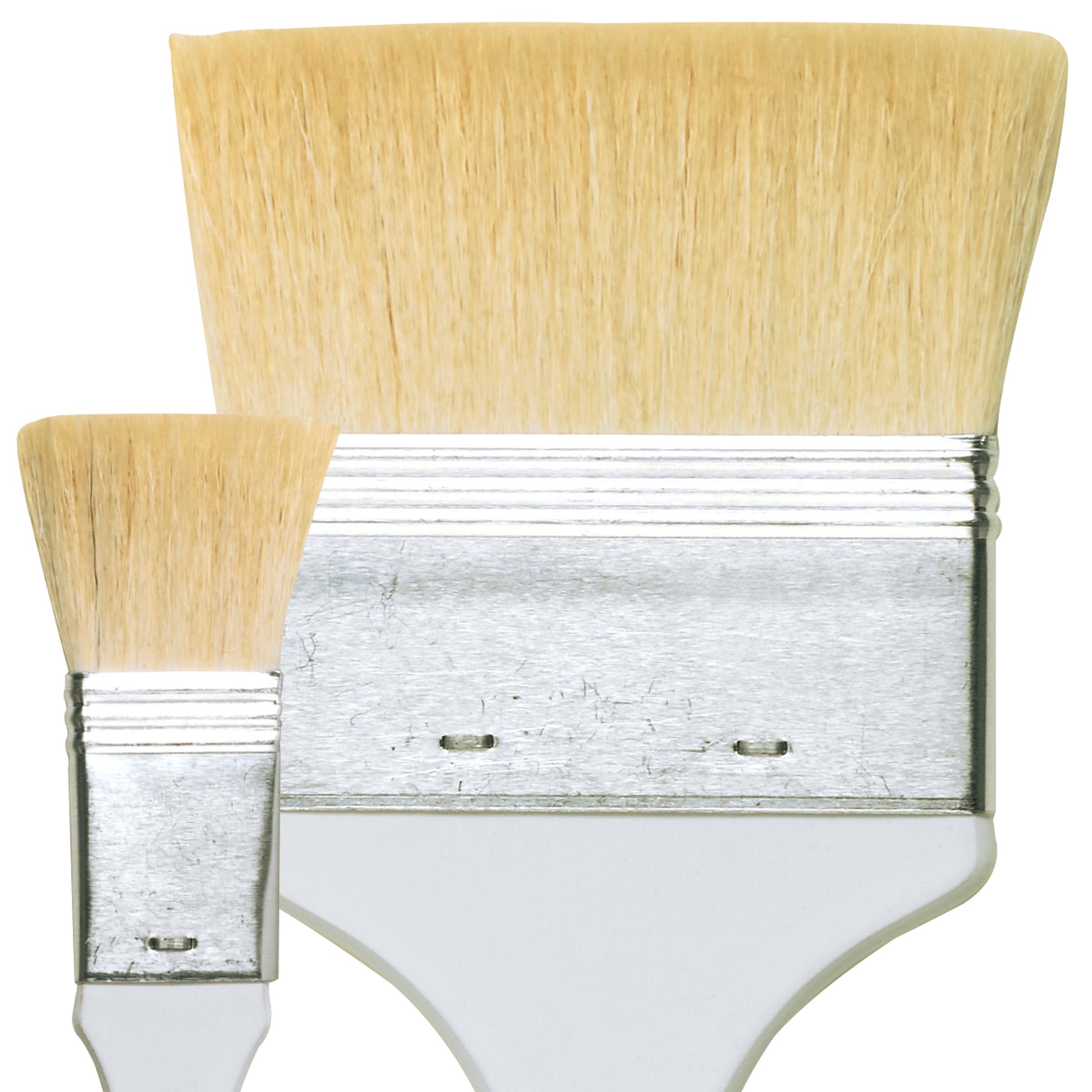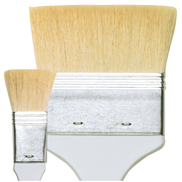 Flachpinsel mit feinem, dem Ziegenhaar nachempfundenem Synthetikbesatz und kurzem, weiß lackiertem Stiel. Geeignet für Verwaschtechnik, Aquarell- und Seidenmalerei. Made in Germany.