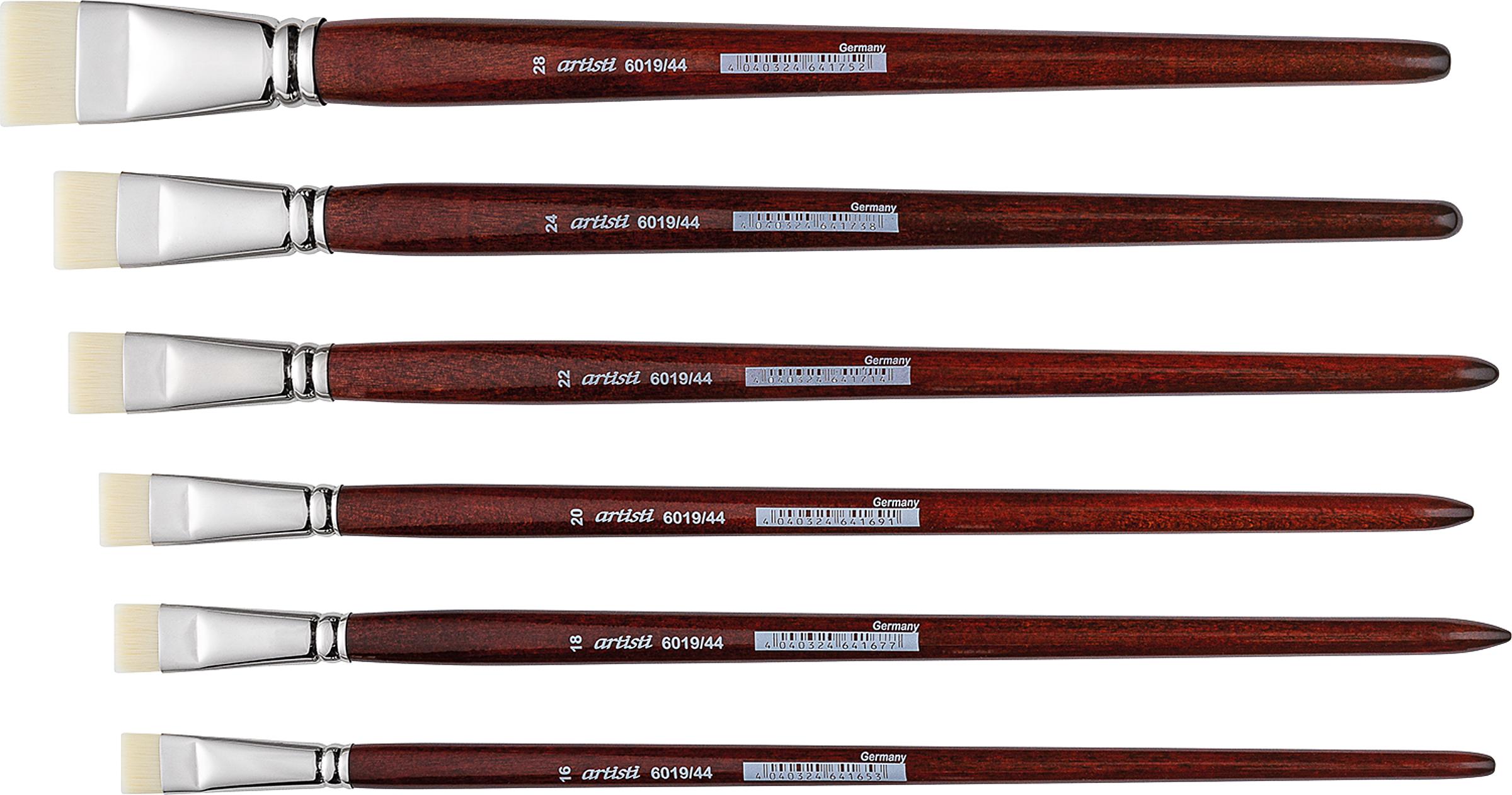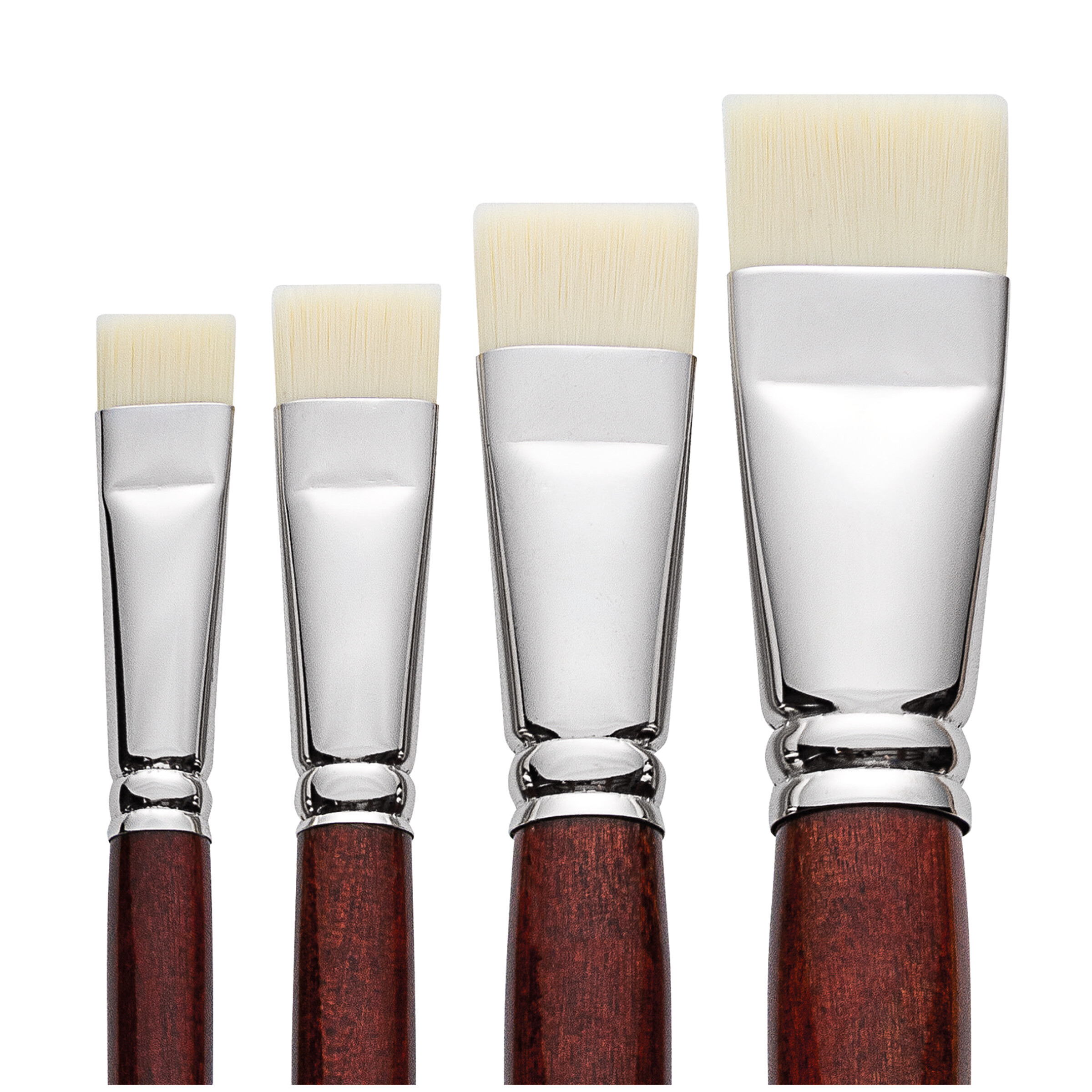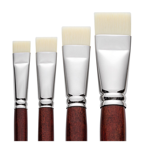 Hochwertiger, extra kurz gearbeiteter Acrylmalpinsel aus besonders feinen Synthetikfasern, die einen kurzen, sehr kräftigen Haarverbund bilden. Damit lässt sich auch pastose Acrylmalfarbe hervorragend verarbeiten. Durch die feinen Haarspitzen und die stabilen Fasern sind die Pinsel sehr formbeständig und eignen sich perfekt für exakte Arbeiten. Ausführung mit nahtlosen, vernickelten Messingzwingen. Langer Stiel aus lackiertem, FSC-zertifiziertem Birkenholz. Made in Germany.