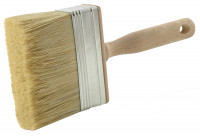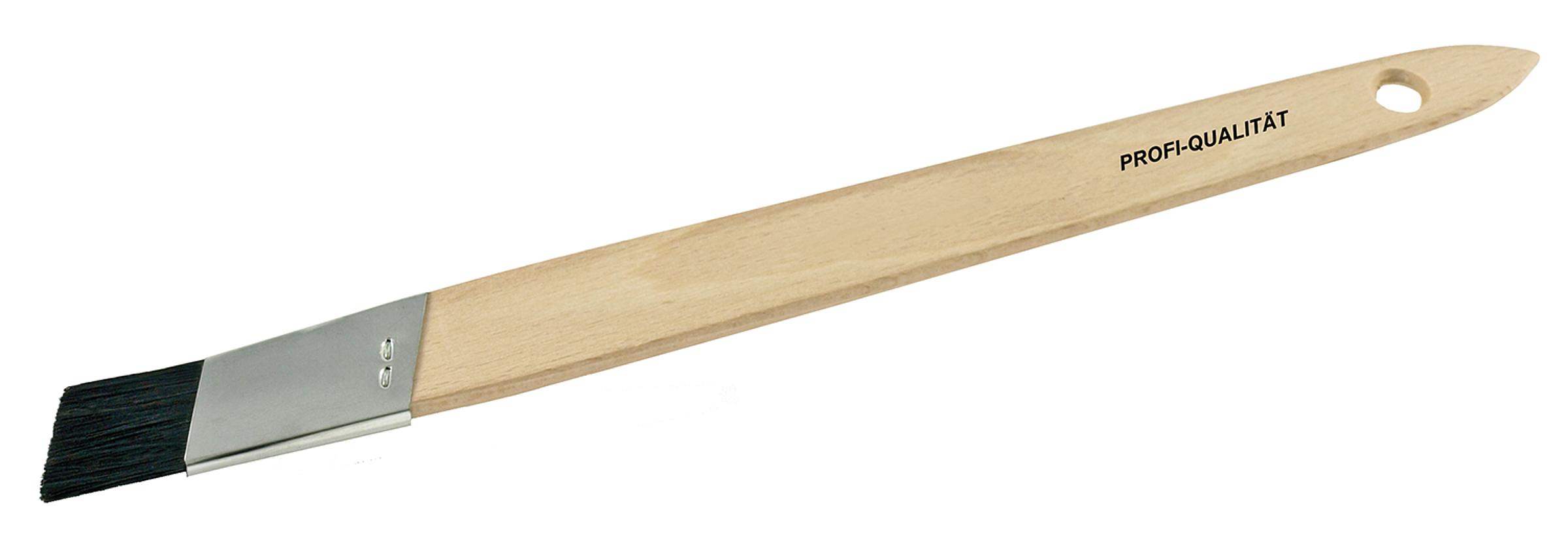 Schwarze vollsynthetische Mischung, Edelstahlzwinge, langer Buchenholzstiel. Für konturenscharfe Malerarbeiten.