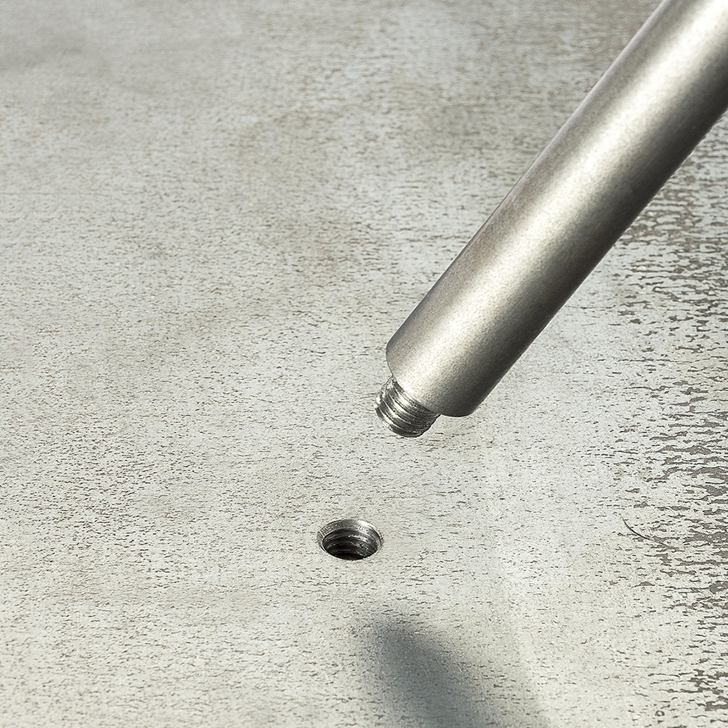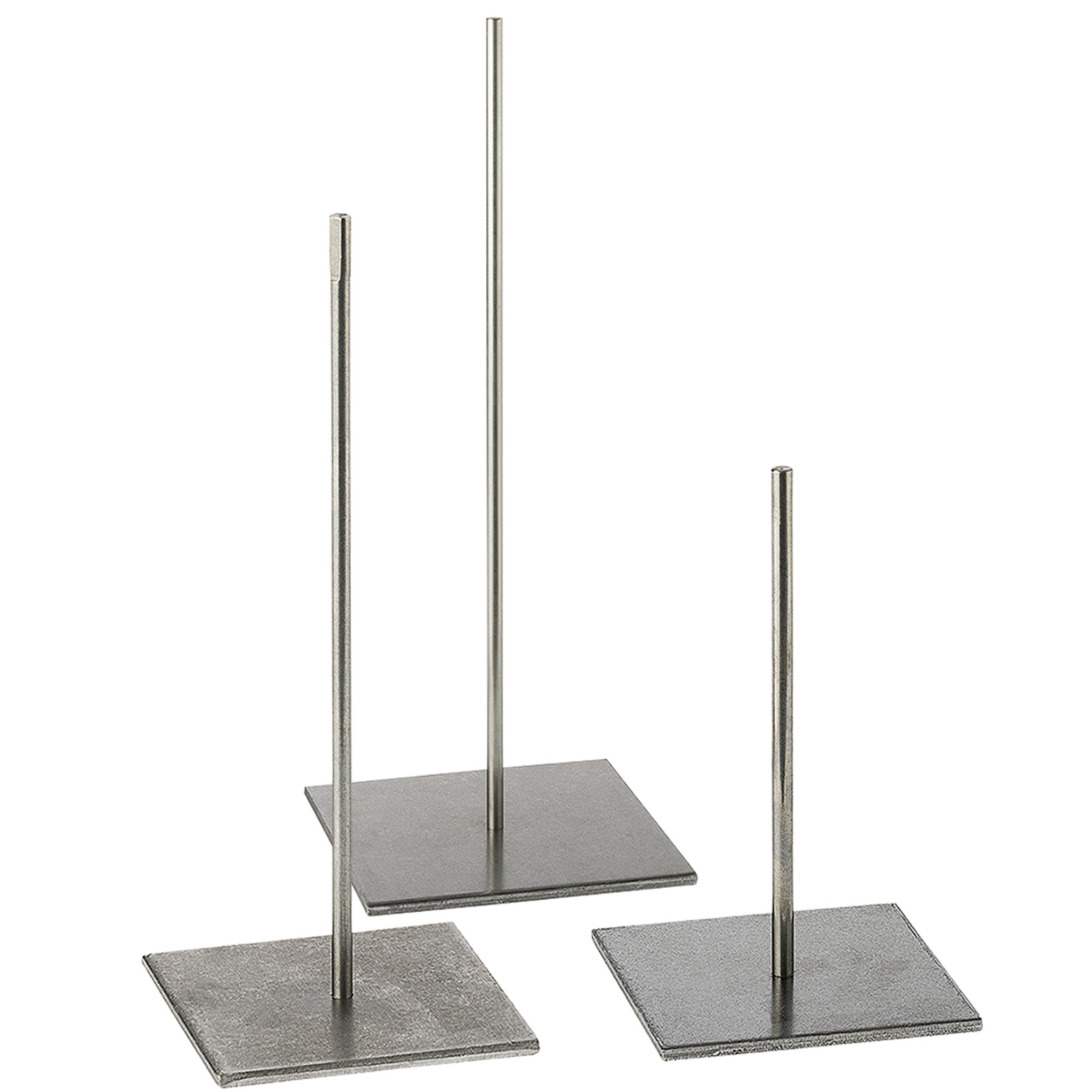 Größe 0: 8 x 8 x 20 cm, Stab-Ø 0,5 cm, Dicke der Sockelplatte 0,4 cm Größe 1: 12 x 12 x 20 cm, Stab-Ø 0,8 cm, Dicke der Sockelplatte 0,5 cm Größe 2: 20 x 20 x 50 cm, Stab-Ø 1 cm, Dicke der Sockelplatte 0,7 cm Größe 3: 30 x 30 x 80 cm, Stab-Ø 1,4 cm, Dicke der Sockelplatte 1 cm