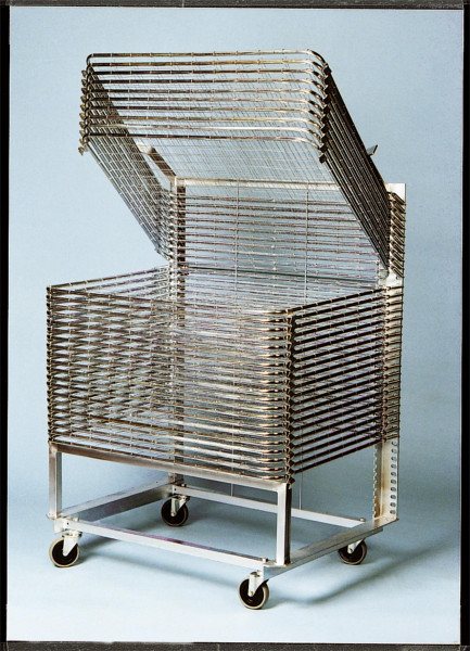 Ein hakelfreies Einlegen und Gleiten des Druckgutes ist durch runde 3 mm starke Querstäbe im Abständen von 75 mm gewährleistet und schließt somit ein Verkratzen aus. Die 4 mm starken Längsstäbe ergeben eine ungewöhnliche hohe Stabilität der Gitterkonstruktion. Signum Stapeltrockner besitzen durchgehend für alle Roste einen Öffnungswinkel von 45 Grad, um ein bequemes Einlegen zu garantieren. Sperrstäbe verhindern ein Durchrutschen eingelegter Bögen bei hochgeklappten Rosten. Drehkranzgelagerte Gummi- bzw. Polyamid-Laufrollen ermöglichen auch bei schlechten Bodenverhältnissen eine gute Lauf- und Wendeeigenschaft des voll ausgelasteten Gerätes.