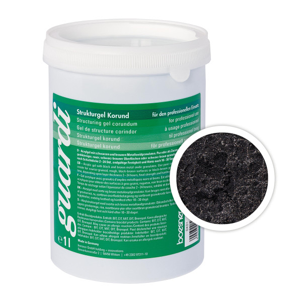 Acrylgel mit echtem Korund. Geeignet für grobkörnige, raue, schwarzbraune Oberflächenbeschichtung mit leichtem Glitzereffekt. Mit transparentem Malgel vermischt, wird bei dünnem Schichtauftrag ein optischer Granuliereffekt auf...