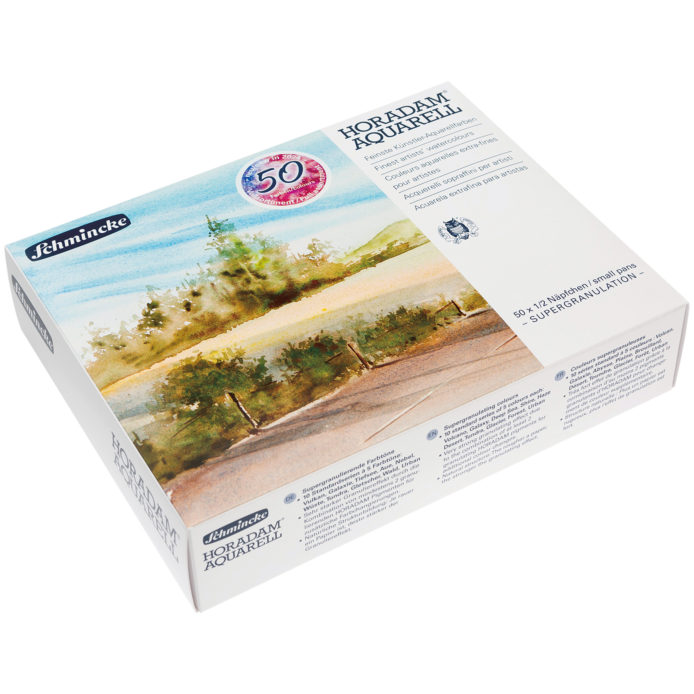 Schmincke – Horadam Aquarell Supergranulierende Aquarellfarben im Set, 50 halbe Näpfchen