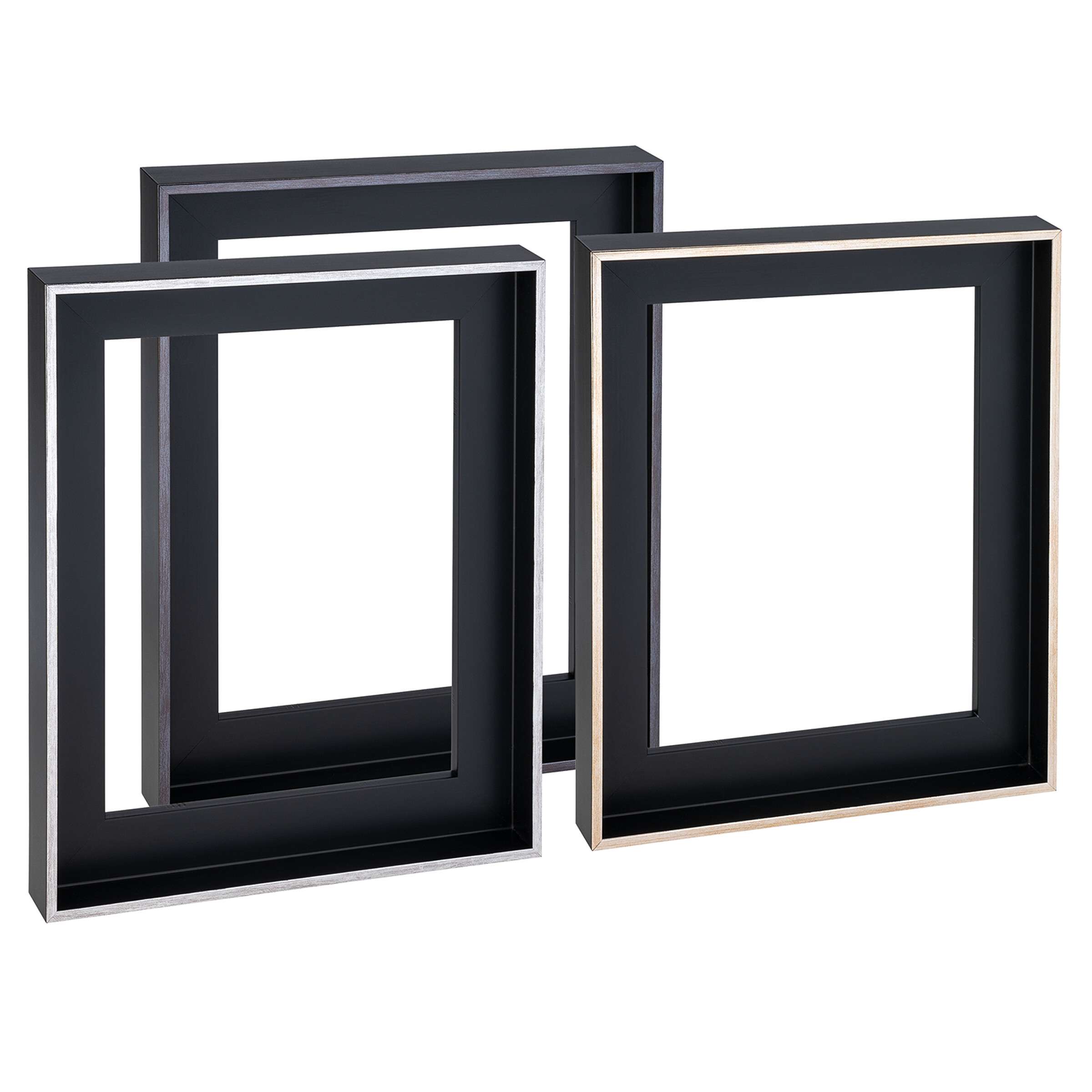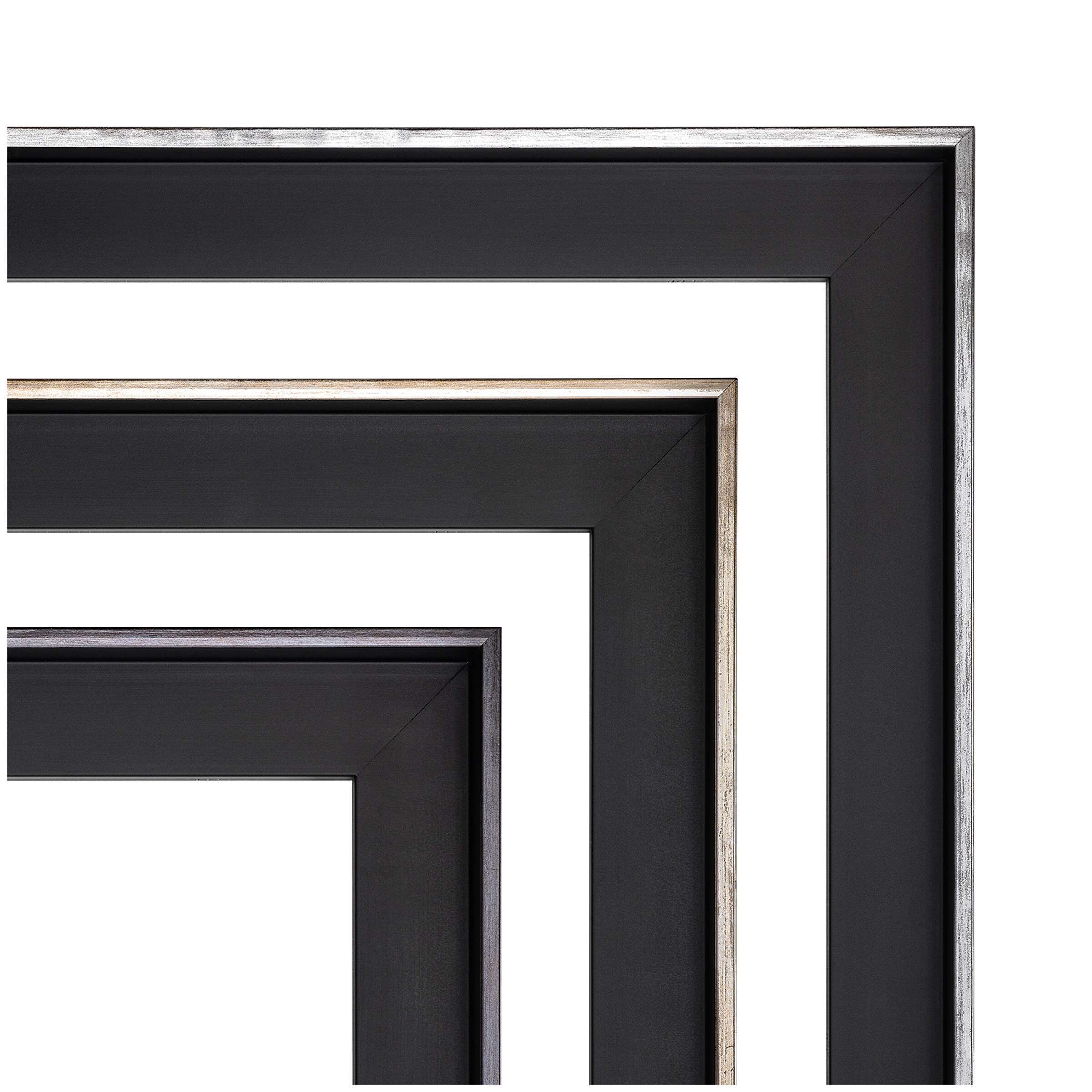 Dezenter Schattenfugenrahmen aus massivem, schwarz lackiertem Kiefernholz mit schmaler, anspruchsvoll gestalteter Sichtkante in Metallic-Tönen. Mit einer Höhe von 35 mm bei 38 mm Breite ist die Profilleiste für die Einrahmung von bespannten Keilrahmen mit einer Tiefe von bis zu 25 mm geeignet. Die nur 5 mm breite Sichtkante (bei 5 mm Schattenfugenbreite) hat ein stilvolles Metallic-Finish. Tokio wird in europäischen Werkstätten nach boesner-Qualitätsstandards gefertigt.
