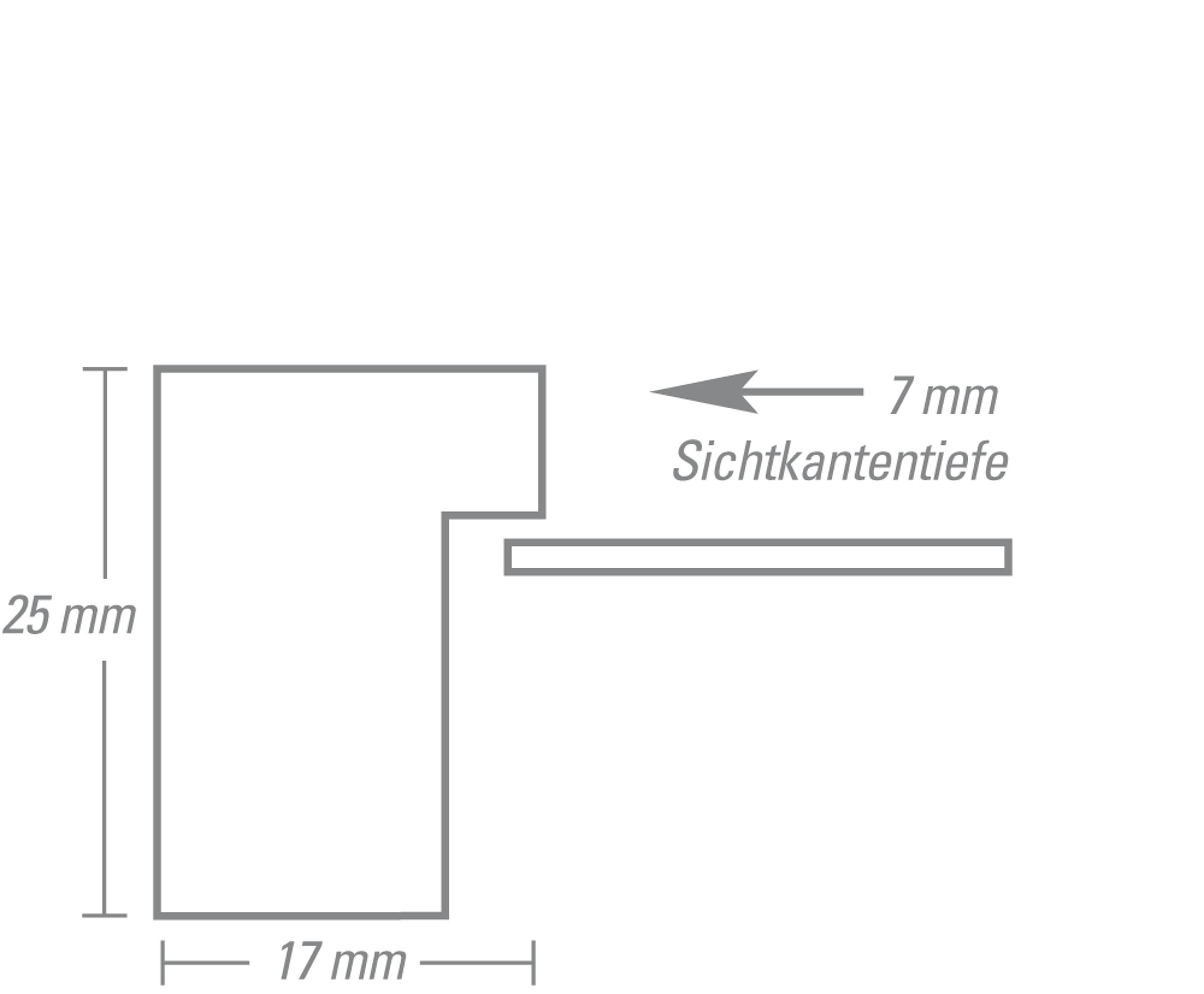 Ein Wechselrahmenprogramm mit klarem und zeitlosem Design für den nahezu universellen Einsatz. Durch eine Sichtkantentiefe von 7 mm liegt das Bild optisch tief im Rahmen. Das unterstreicht zusätzlich die Wirkung der Einrahmung.