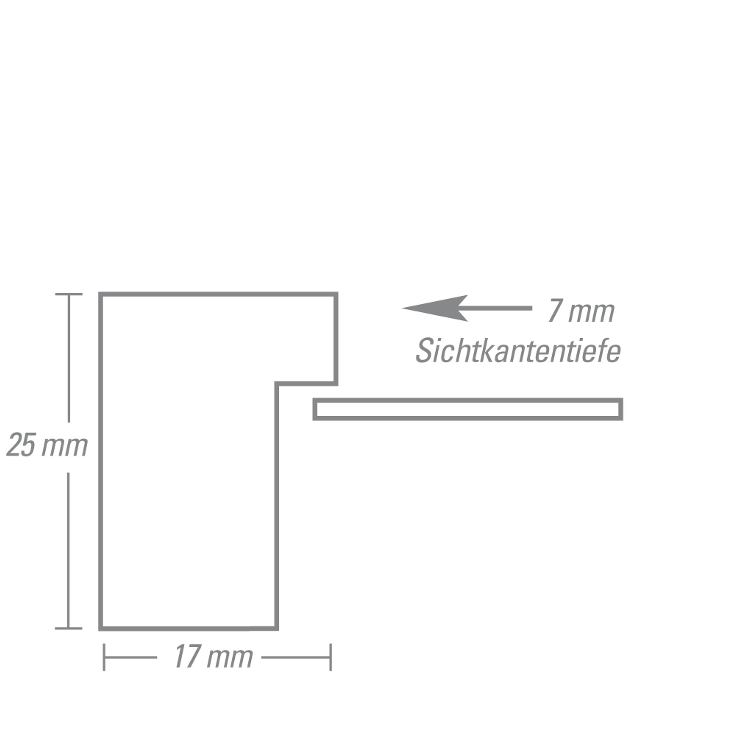 Ein Wechselrahmenprogramm mit klarem und zeitlosem Design für den nahezu universellen Einsatz. Durch eine Sichtkantentiefe von 7 mm liegt das Bild optisch tief im Rahmen. Das unterstreicht zusätzlich die Wirkung der Einrahmung.