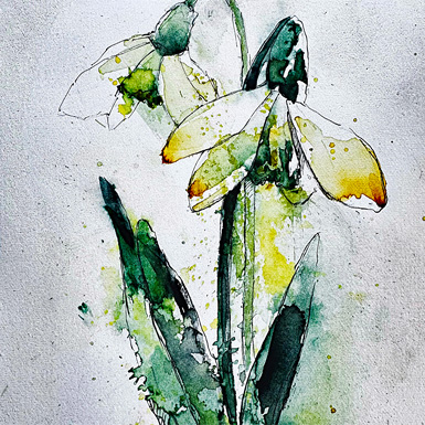 Aquarell – die duftigste Art des Malens – lebt von der Transparenz und Zartheit des Farbauftrages. Zart sprießende Frühlingsboten wie Schneeglöckchen und Narzissen laden geradezu dazu ein, reduziert und duftig in Szene gesetzt zu werden.