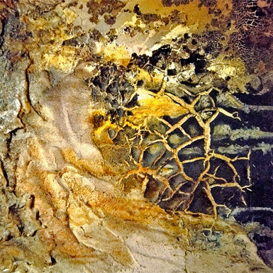 Starke Strukturen erschaffen Sie mit Marmormehl, XL Crackle Paste und Krakeliermedium (Restmaterial aus dem Vorgängerkurs „Wir lassen es krachen“ kann gerne mitgebracht und weiter verarbeitet werden).