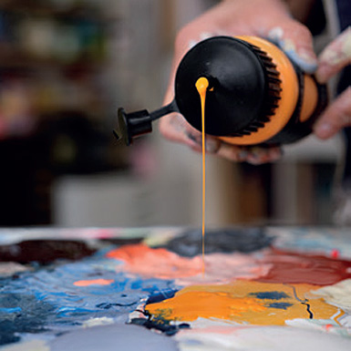 Karin Weixler präsentiert die spezifischen Eigenschaften des neuen Farbmediums Aquarylic und die Anwendung mit diversen Malmitteln.