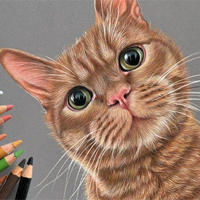 Tauchen Sie ein in die Welt der Pastellzeichnung und erstellen Sie mit nur 10 ausgewählten Pastellstiften ein beeindruckendes Porträt einer roten Katze.