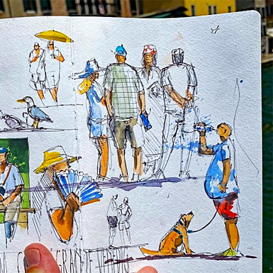 Der Reiseaquarellist und Urban Sketcher Jens Hübner verrät Ihnen, wie Sie vorbeieilende Spaziergänger oder Jogger unauffällig im Skizzenbuch festhalten können. Was gibt es zu beachten, um Kleidung und Umfeld mit wenigen Materialien lebendig darzustellen.
