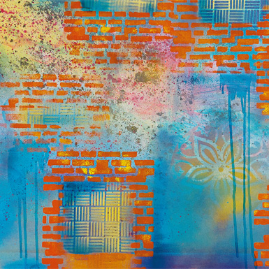 Experimentell und dennoch strukturiert entstehen Flächen, die wie von selbst miteinander harmonieren und zu schweben scheinen. Es entsteht eine spannende Dreidimensionalität und Farbigkeit im Bild.