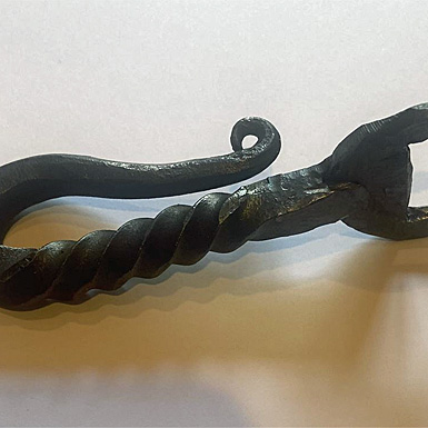 Kursinhalt: Einführung in Materialkunde, Vorstellung und Erklären der alten selbstgemachten Werkzeuge und Schmiedetechniken, Anheizen der Schmiede-Esse, erste Grundschläge mit glühendem Eisen, eine Spitze ausschmieden, Gestalten und Bearbeiten des Flaschenöffners.