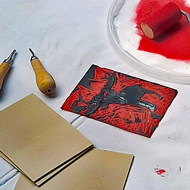 Mit dem Linolschnitt kannst Du in kurzer Zeit eigene Drucke erstellen.