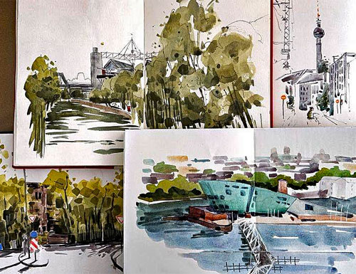 Man kann sich beim Zeichnen in Details verlieren. Müssen ein Aquarell oder ein Urban Sketch detailreich sein? Oder ist weniger mehr, damit eine Szene klar wird?