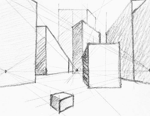 Um Straßenfluchten, Räume oder Gegenstände wiederzugeben, muss man die Dimensionen des Raums beachten.
