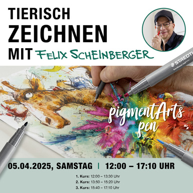 Zum Auftakt der Veranstaltung um 12 Uhr verrät Prof. Felix Scheinberger, wie raffinierte Tierzeichnungen entstehen. Eine ideale Gelegenheit, dem Meister der Tierillustration über die Schulter zu schauen.