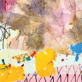 Im nächsten Schritt werden Sie Ihre Papiere mutig zerreißen und zu einer neuen überraschenden Arbeit zusammenfügen. Oft entstehen dabei ungeahnte Bildwelten, die der bewusste Verstand nicht hervorgebracht hätte.