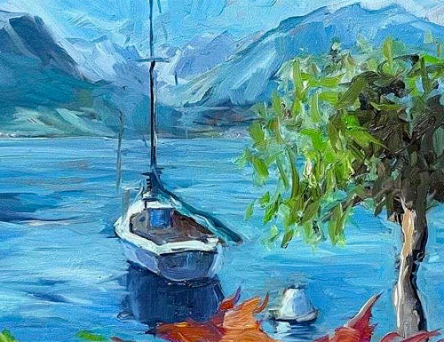 Diese Fragen werden Sie im Kurs malerisch lösen und ein erstes kleines Urlaubsszenarium mit der wasservermalbaren Ölfarbe Norma Blue von Schmincke umsetzen.
