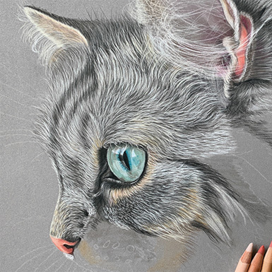 Tauchen Sie ein in die Welt der Pastellzeichnung und erstellen Sie mit nur 10 ausgewählten Pastellstiften ein beeindruckendes Porträt einer roten Katze. In diesem Grundkurs lernen Sie Schritt für Schritt, wie Sie eine stimmige Untermalung anlegen, Techniken, um Katzenaugen zum Leuchten zu bringen und Tipps für realistisch weiches Katzenfell. Die erlernten Methoden sind vielseitig einsetzbar und eignen sich hervorragend, um später auch andere Tiere mit Pastellstiften lebendig und detailreich zeichnen zu können.