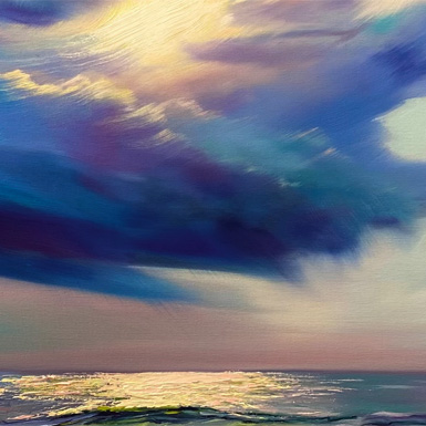 Tauchen Sie ein in die Magie des Sonnenuntergangs über dem Meer! In diesem Kurs erlernen Sie die Kunst, Licht, Wasserstrukturen und die Elemente des Himmels mit Ölfarben darzustellen.